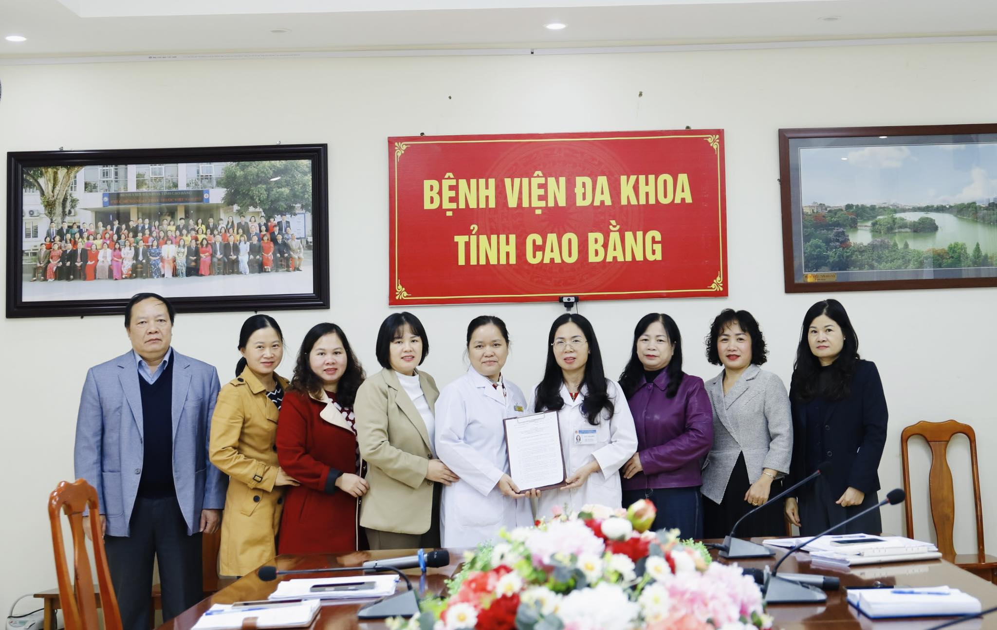 Tham dự có BSCKII Lục Thị Hiệp – Phó Bí thư Đảng uỷ, Phó Giám đốc Bệnh viện; BSCKII Vi Thị Biến – Ủy viên Ban Chấp hành Đảng bộ, Phó Giám đốc Bệnh viện; lãnh đạo các khoa, phòng, cùng sự tham gia trực tuyến từ các điểm cầu toàn viện.